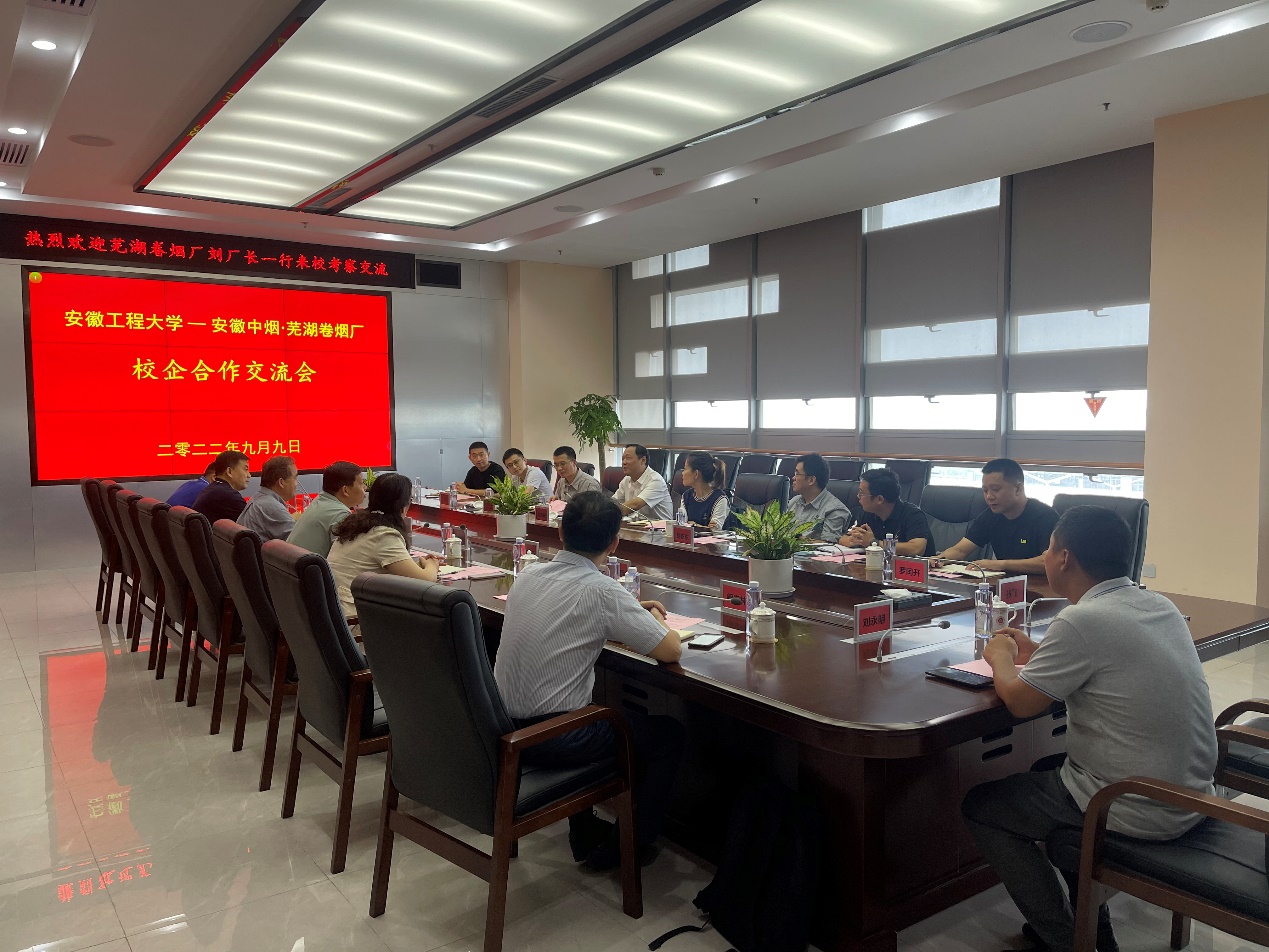 刘厂长对学校的热情接待表示感谢,他表示作为校友,带领芜湖卷烟厂主要的技术部门和人力资源部的负责人,再次回到母校,感受到了学校翻天覆地的变化,为学校不断取得的发展新成就感到高兴,然后介绍了公司发展情况,指出母校的学科布局、专业结构与公司现有技术装备的契合度较高,公司的科技创新领域也与学校科技人才优势密切关联,希望双方今后进一步加强沟通,先从可以具体落地的项目开始,一步一个脚印,在推进联合人才培养、科技资源共享等方面不断深化合作,为企业向更高层次发展提供技术和人才方面的支持。
