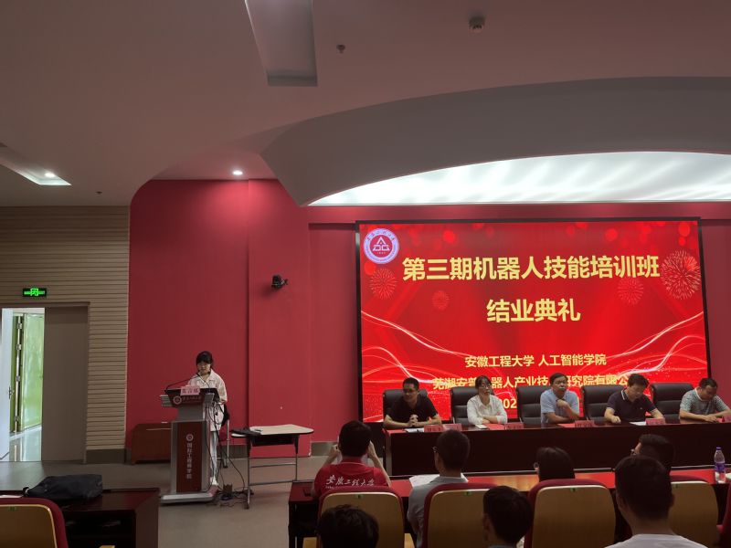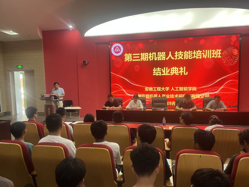 9月17日上午,我院在国际工程师学院小报告厅举行第三期机器人技能培训班结业典礼。我院党委书记任家钱,党委副书记李文江,副院长江本赤,芜湖市工业机器人定点培训机构—芜湖安普机器人产业技术研究院有限公司工程师教育装备部副部长朱孟,智能制造工程系专业教师,辅导员,培训班全体学员,2022级机器人工程专业、智能制造工程专业全体新生参加。结业典礼由智能制造工程系主任刘玉飞主持。