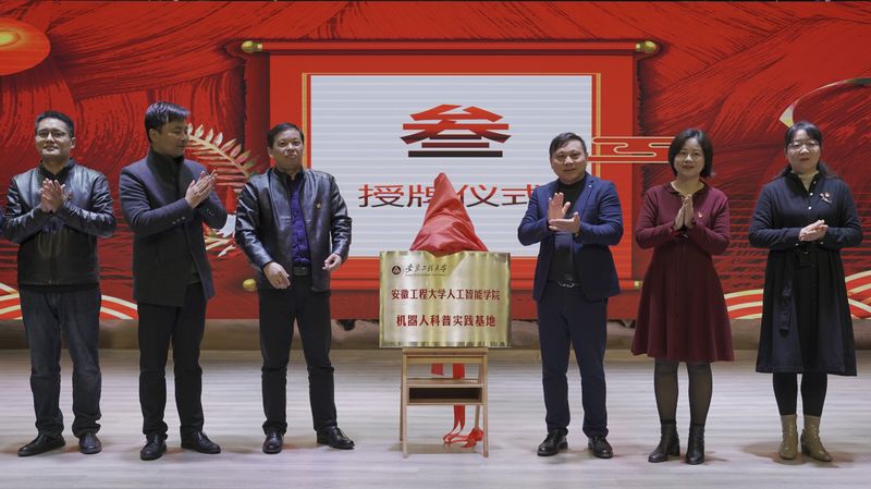 在热烈的掌声中,双方领导与经开区教育局领导的共同见证下,举行了“新葡的京集团3512vip机器人科普实践基地”授牌仪式。