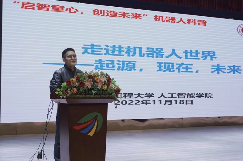 任家钱在讲话中指出,当前,全国上下正在全面学习贯彻党的二十大精神,习近平总书记在二十大报告中提出,教育、科技、人才是全面建设社会主义现代化国家的基础性、战略性支撑。深入实施科教兴国战略、人才强国战略、创新驱动发展战略,要坚持教育优先发展、科技自立自强、人才引领驱动,加快建设教育强国、科技强国、人才强国,坚持为党育人、为国育才,全面提高人才自主培养质量,着力造就拔尖创新人才,聚天下英才而用之。小学教育是教育的基础,影响孩子的一生,今天两校举办大手牵小手,开展机器人知识科普活动,可以很好地激发孩子学习科技的兴趣,提升他们的创新意识和创新能力。希望大学生志愿者届届相传,把此项活动办成学校志愿服务品牌活动,助力小学生成长成才,为社会主义现代化强国建设贡献力量。