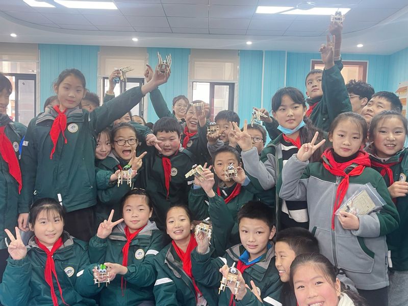 我院青年志愿者服务队成员,指导45名小学生代表制作蜘蛛机器人,经过一个多小时的制作,孩子们与志愿者们共同完成了蜘蛛机器人的制作,并完成了“蜘蛛快跑竞赛”活动。