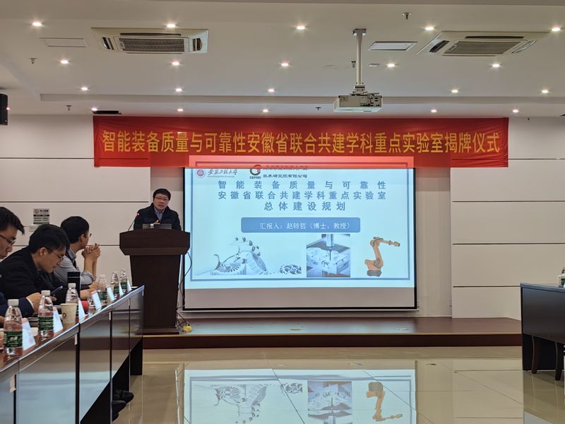 苏国红在致辞中介绍了学校基本情况,总结了近三年来我校与芜湖赛宝机器人公司开展的一系列产学研合作项目,希望双方以共建“智能装备质量与可靠性”实验室为契机,与芜湖市的机器人、飞机、新能源汽车等智能装备企业建立更紧密、更持久、更长效的合作关系,助力企业实现产业转型升级;紧扣地方发展需求和安徽省“三地一区”建设要求,共同推进跨学科人才培养和产学研深度融合,构建高校服务地方经济发展的专业链、产业链、人才链和创新链,实现我校人才培养精准对接企业需求,切实解决企业“卡脖子”问题,助推我省科学技术实现新的跨越式发展。