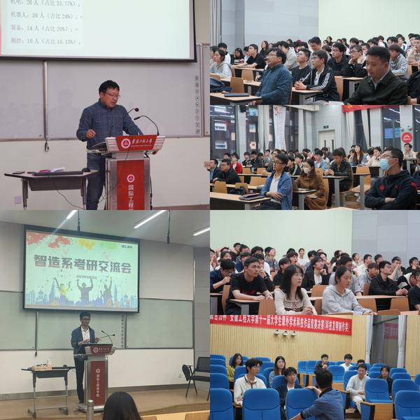 为深入贯彻落实学校“三抓”和“三全六专”育人实践工作要求,进一步帮助广大学子更好地备战考试,5月10日,智能制造工程系、智能科学与工程系分别在学习中心X108、X112开展考研交流会。各系部专业教师、2019级学生代表、2020级辅导员、200余名同学参加会议,会议由张璐主持。