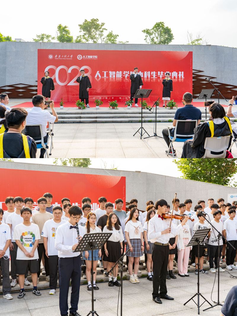 随后,学院在校生代表深情演唱《匆匆那年》《那些花儿》,梦溪合唱团献上《送别》的祝福,毕业生代表演唱歌曲《再见》。在一声声祝福中,毕业典礼顺利结束。