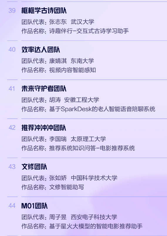近日,科大讯飞“星火杯”认知大模型场景创新赛TOP50强名单公布,我院“未来守护者团队”位列其中,获得成功晋级下一阶段比赛的资格,将与来自清华大学、浙江大学、哈尔滨工业大学、莫斯科大学、哥伦比亚大学、加州大学等海内外著名高校团队同台竞技!