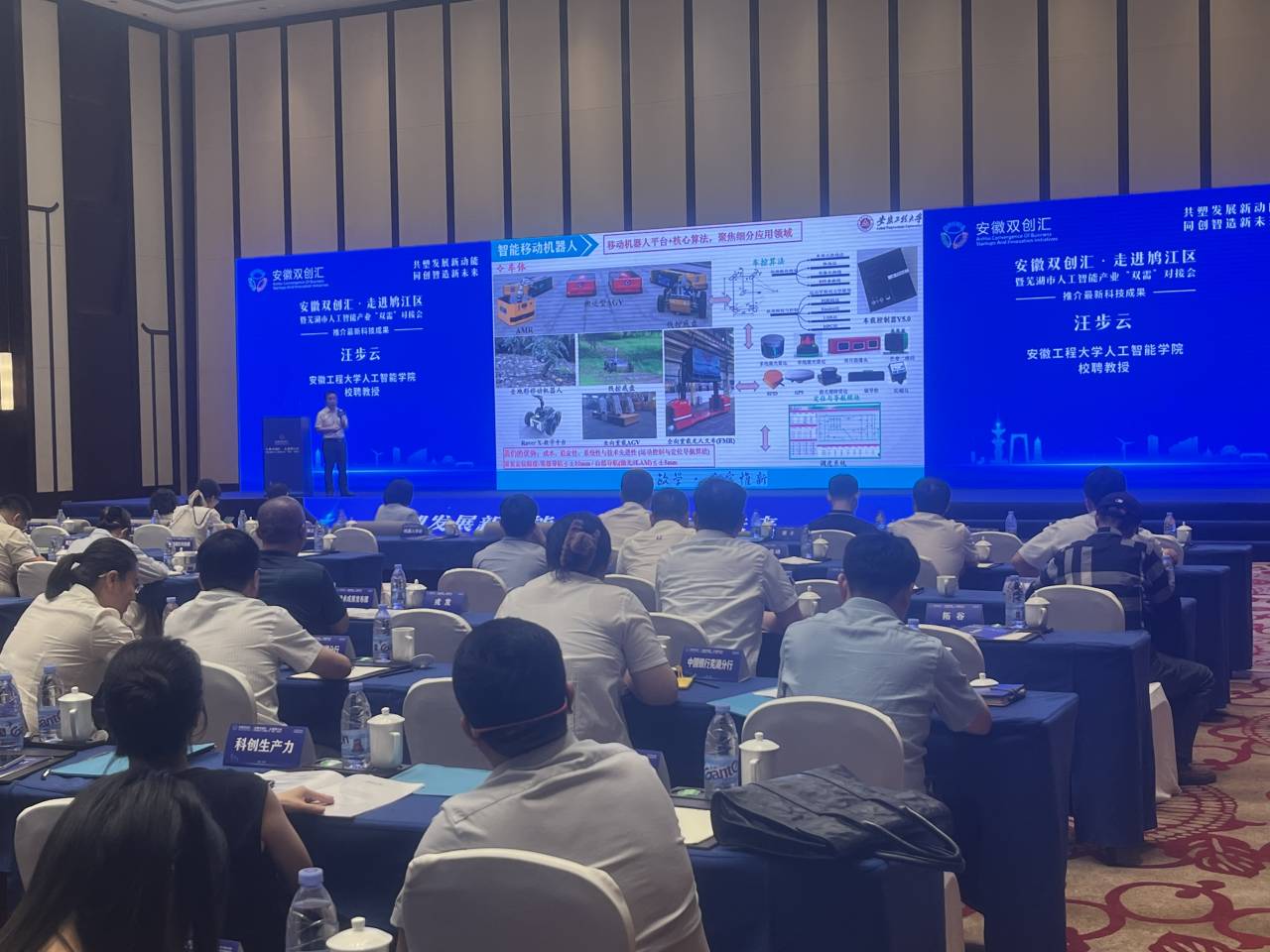9月20日,由安徽省科技厅主办,芜湖市鸠江区人民政府、芜湖市科技局等单位承办的安徽双创会·走进鸠江区暨芜湖市人工智能产业“双需”对接会在鸠江区隆重举行。芜湖市人工智能产业链上下游企业、浙江大学、哈尔滨工业大学、东南大学、江苏大学、哈尔滨工程大学、南京工业大学以及在芜高校院所代表参加活动。我校我院汪步云教授现场发布了其科研团队的最新成果。