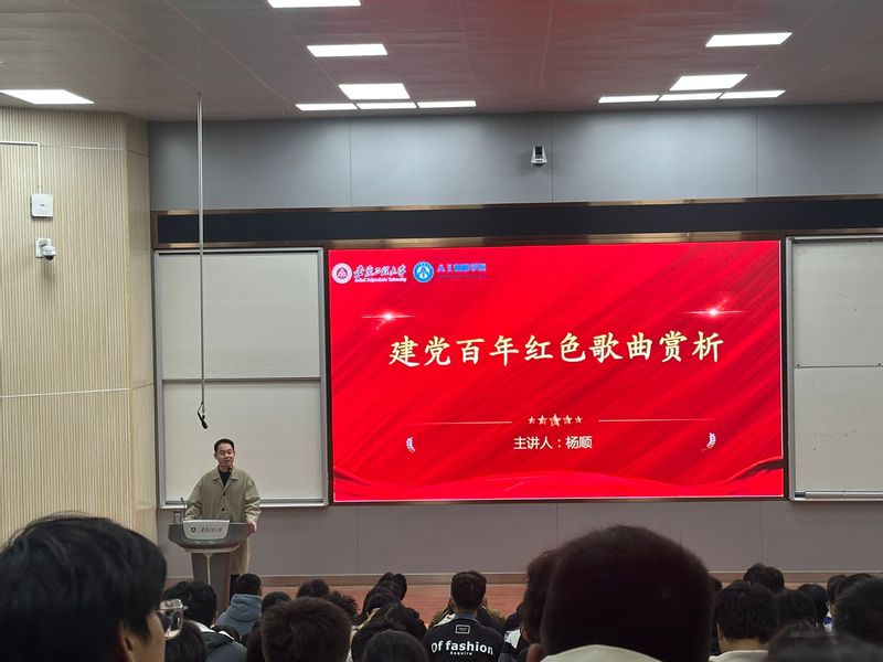 为落实“三全六专”育人实践,提高同学们的家国情怀,为实现伟大复兴的“中国梦”注入动力,唱响“初心”誓言,焕发出踔厉奋发新时代的“中国力量”。11月20日,我院杨顺老师在2J报告厅开展“建党百年红色歌曲赏析”主题培训活动。学院23级全体学生参加。