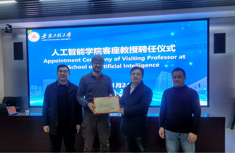 11月24日下午,我院在图文中心612会议室举行客座教授聘任仪式暨学术报告会,聘任意大利籍机器人工程师Daniele Pillan担任客座教授。学院部分教师、本科生和研究生聆听了学术报告,会议由副院长江本赤主持。